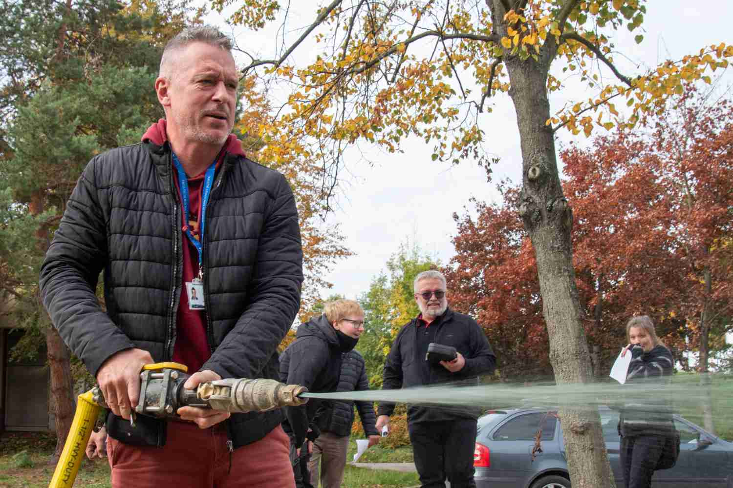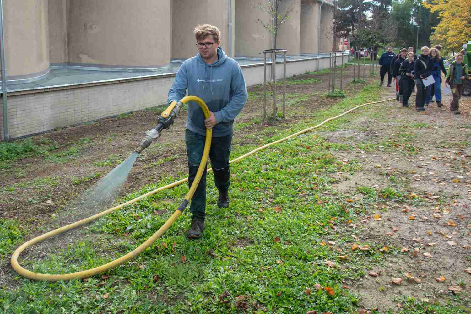 17. října 2025V areálu Fakultní nemocnice Olomouc sice v posledních měsících vládne enormní stavební ruch, ale největší zdravotnické zařízení na střední Moravě se snaží, aby se plochy po dokončení prací co nejrychleji opět zazelenaly. K zatravnění nových i upravených ploch proto pracovníci Oddělení vodního hospodářství a ekologie nově využívají technologii hydroosevu – moderní a efektivní způsob, jak rychle a rovnoměrně obnovit travnatý povrch, a to i na místech, kde by klasické setí nemělo šanci. Naposledy tuto inovativní metodu využili u vjezdu z ulice Hněvotínská. Hydroosevu plochy přihlíželi a sami si jej vyzkoušeli i studenti Střední školy zemědělské a zahradnické Olomouc.