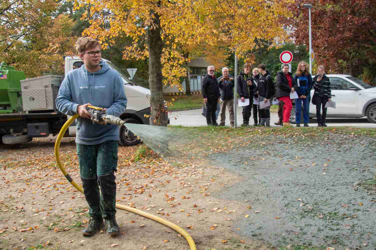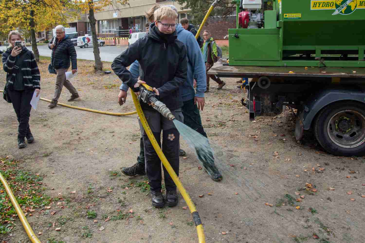 - Obrázek 1: Aplikaci hydroosevu si sami vyzkoušeli i studenti Střední školy zemědělské a zahradnické Olomouc.