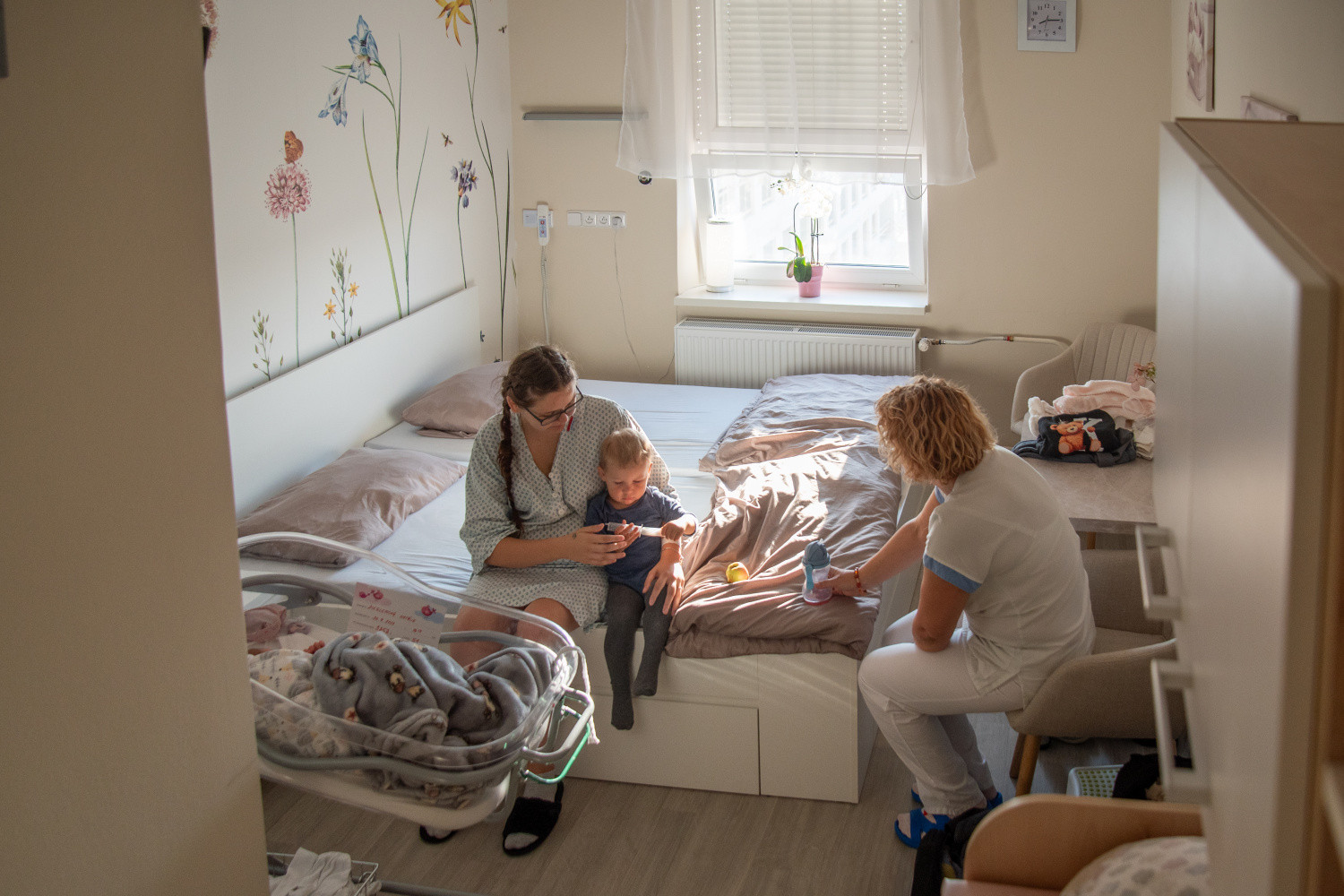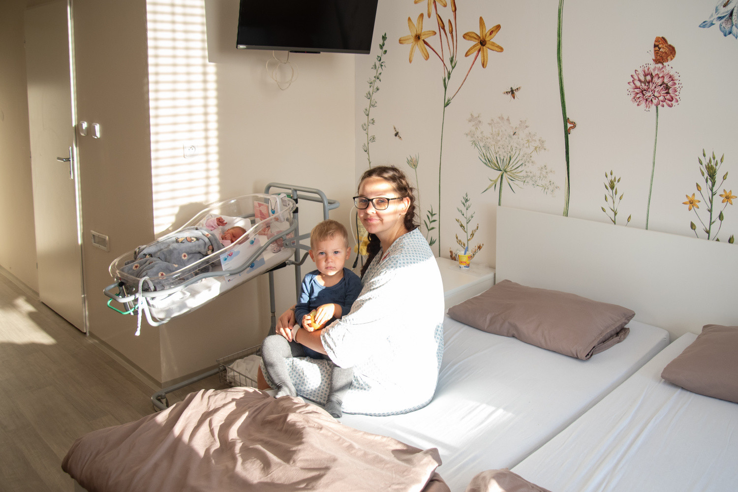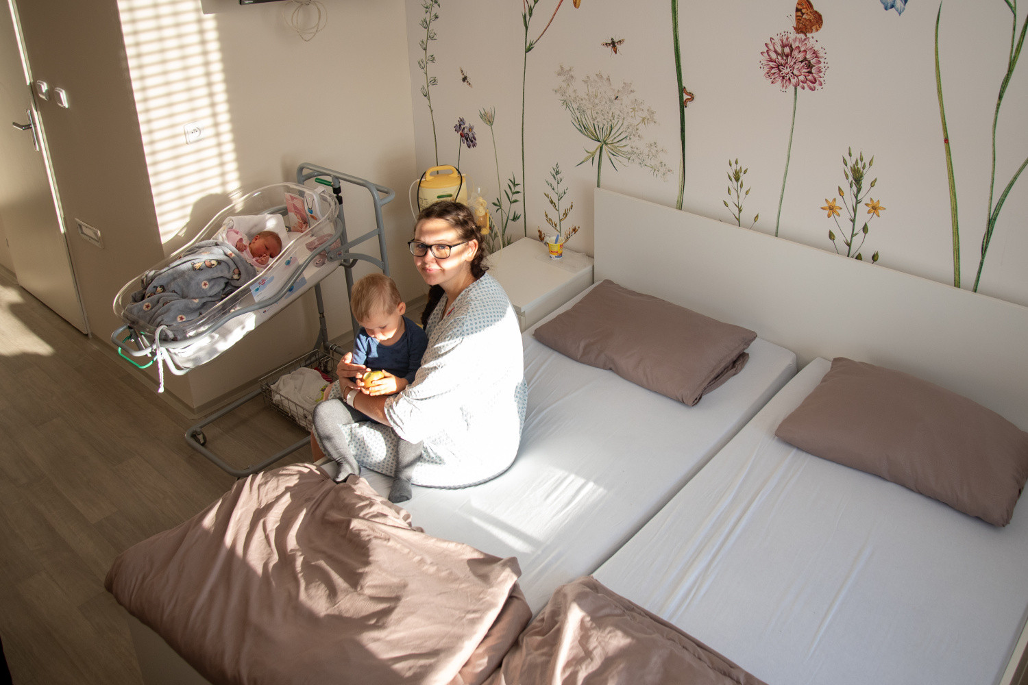 Rodinný pokoj v olomoucké porodnici: Maminka Aneta si užívá soukromí i s oběma dětmi