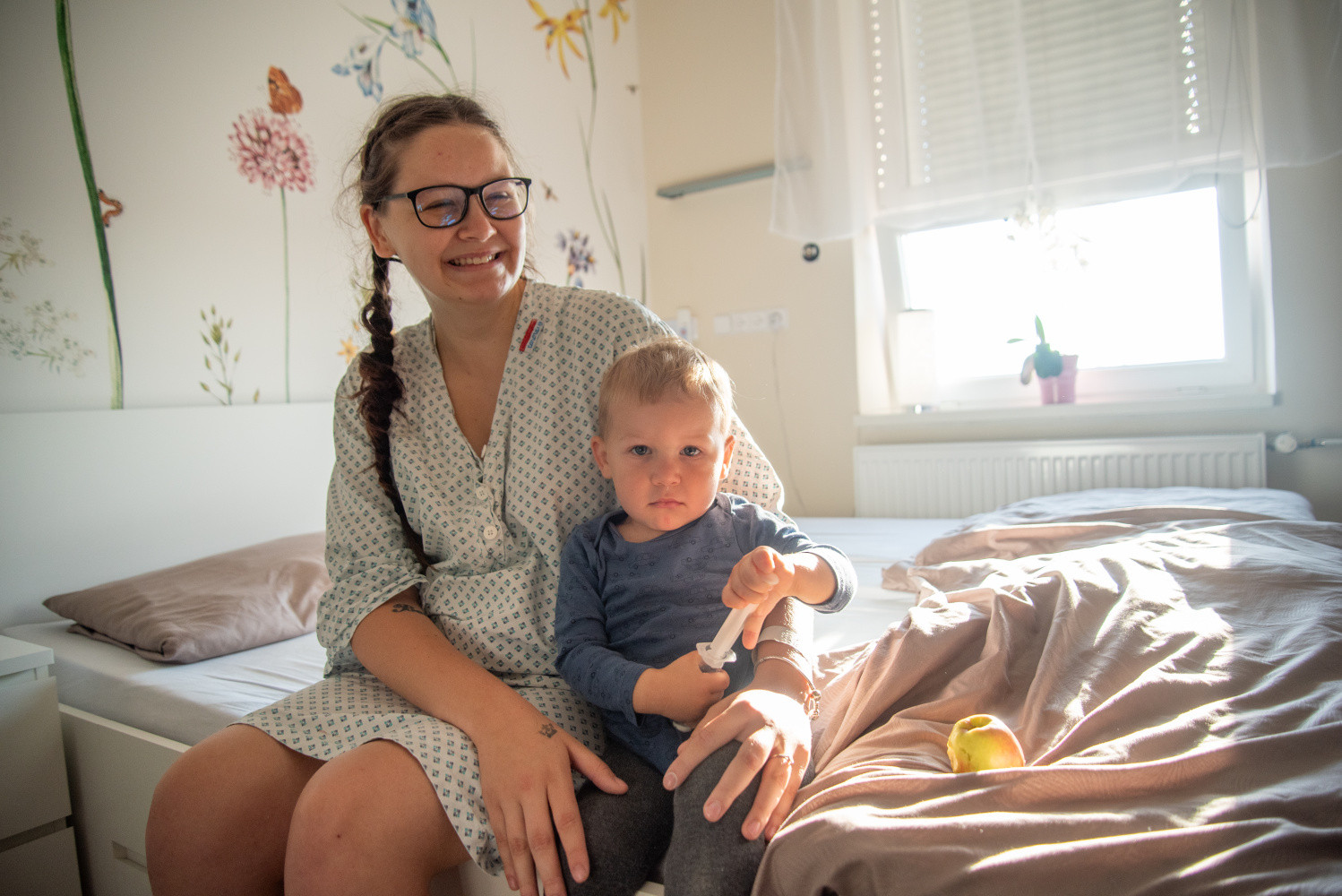 Obrázek 1: Kubík se od maminky Anety ani nehne. Rodinný pokoj tedy bylo ideální řešení.