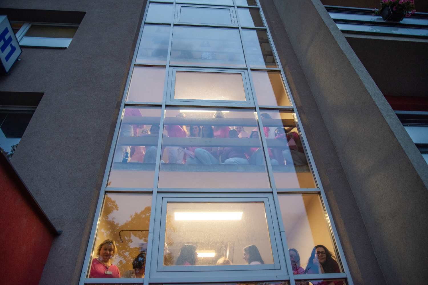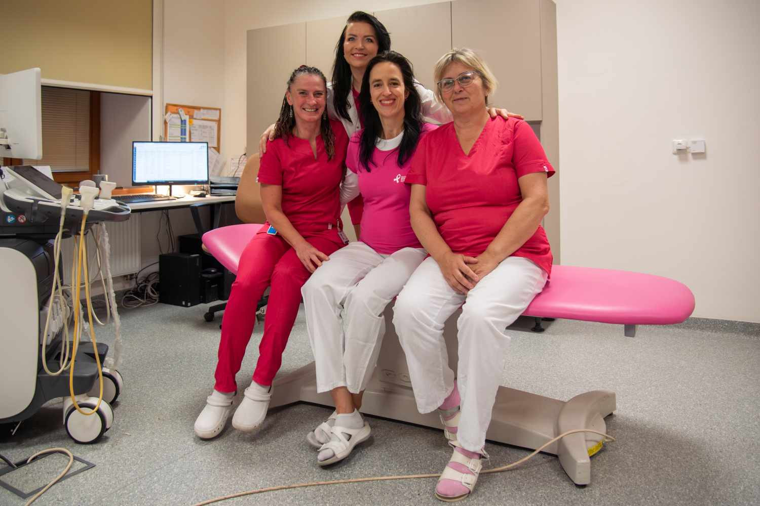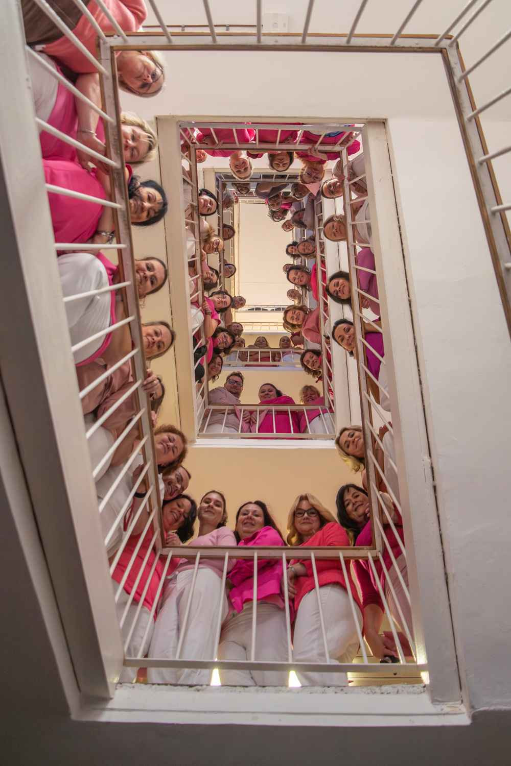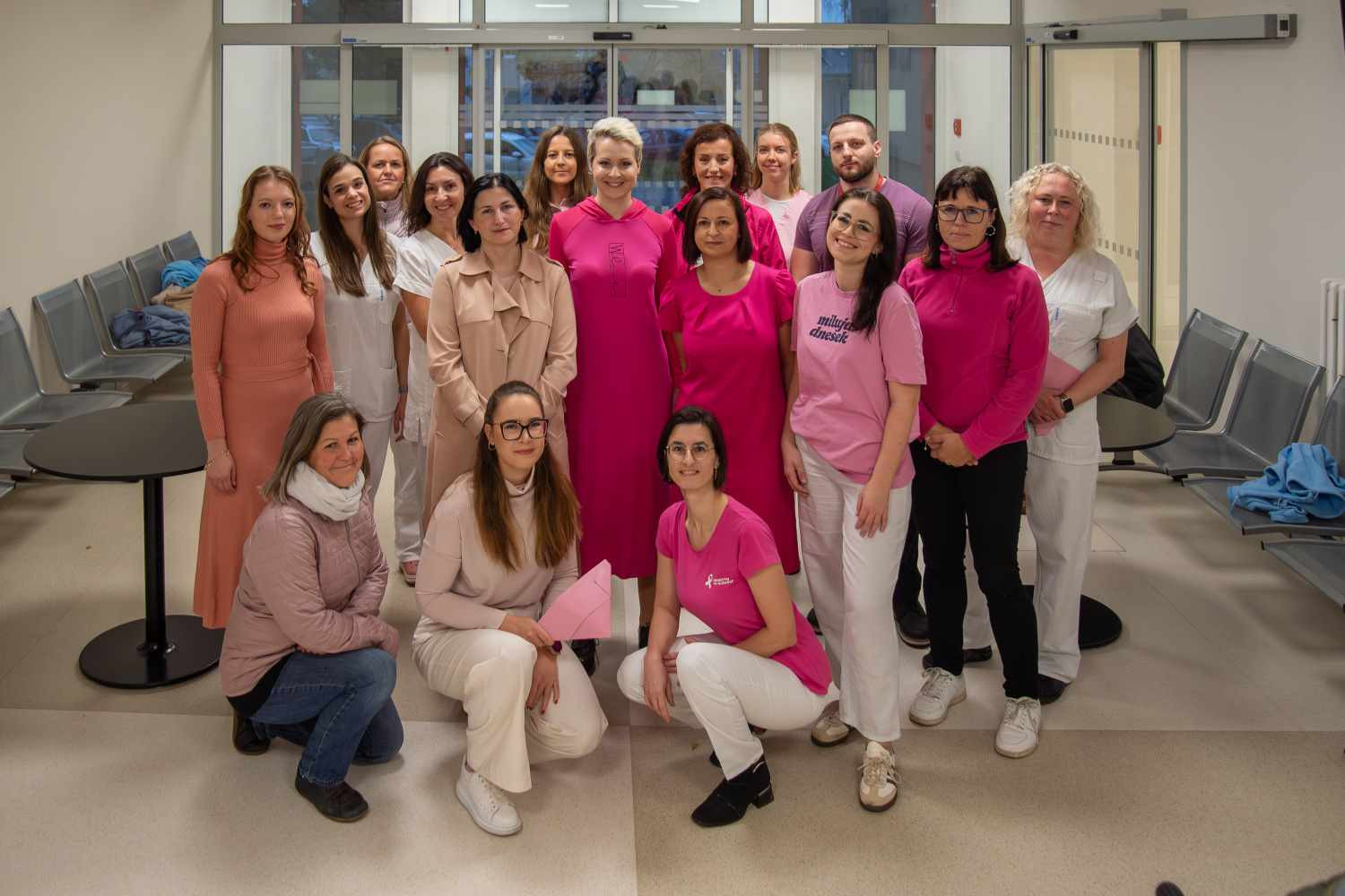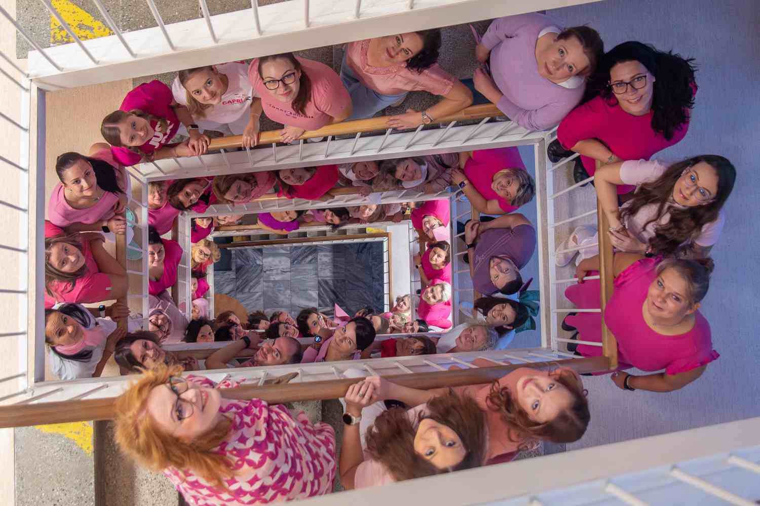 V rámci kampaně Pink@Work se pracovníci nemocnice - konkrétně Onkologické kliniky, Oddělení mamární diagnostiky Radiologické kliniky, Kliniky nukleární medicíny, Chirurgické kliniky a Ústavu klinické a molekulární patologie - zúčastnili také růžového focení zaměstnanců, kterým vyjádřili podporu pacientkám a připomněli důležitost pravidelných preventivních vyšetření. „Rakovina prsu se může týkat každé z nás. Včasný záchyt výrazně zvyšuje šanci na úspěšnou léčbu,“ upozorňuje primářka olomoucké Onkologické kliniky doc. MUDr. Hana Študentová, Ph.D.