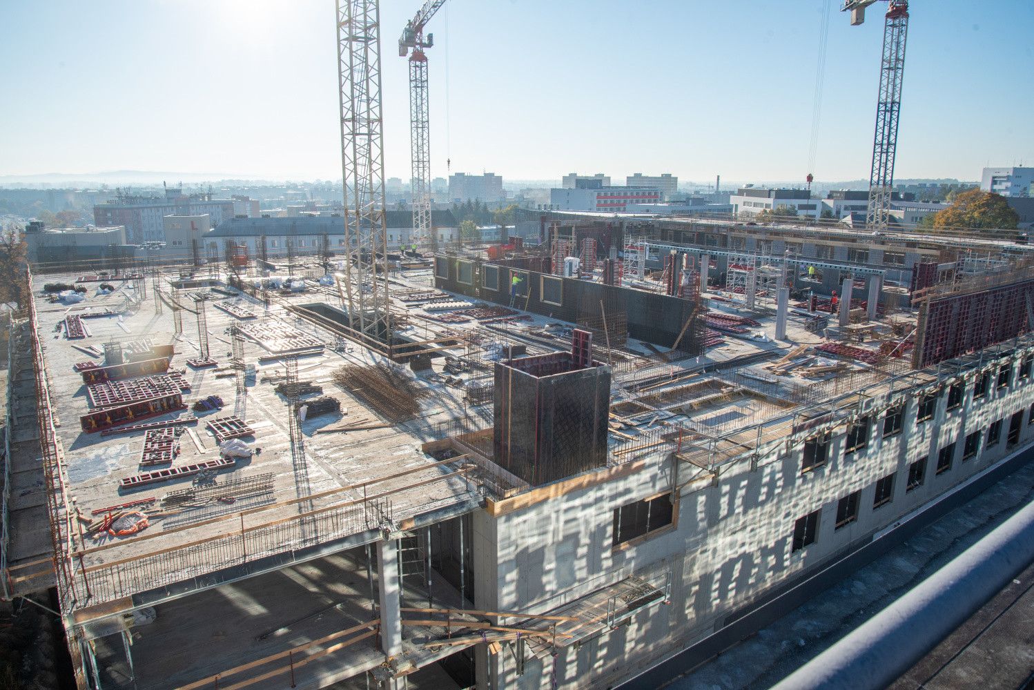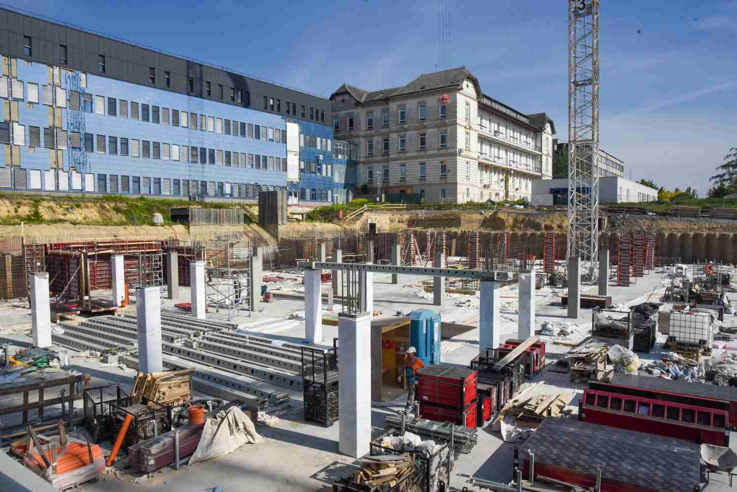 Rok poté. Nový centrální pavilon Fakultní nemocnice Olomouc už se tyčí do výše