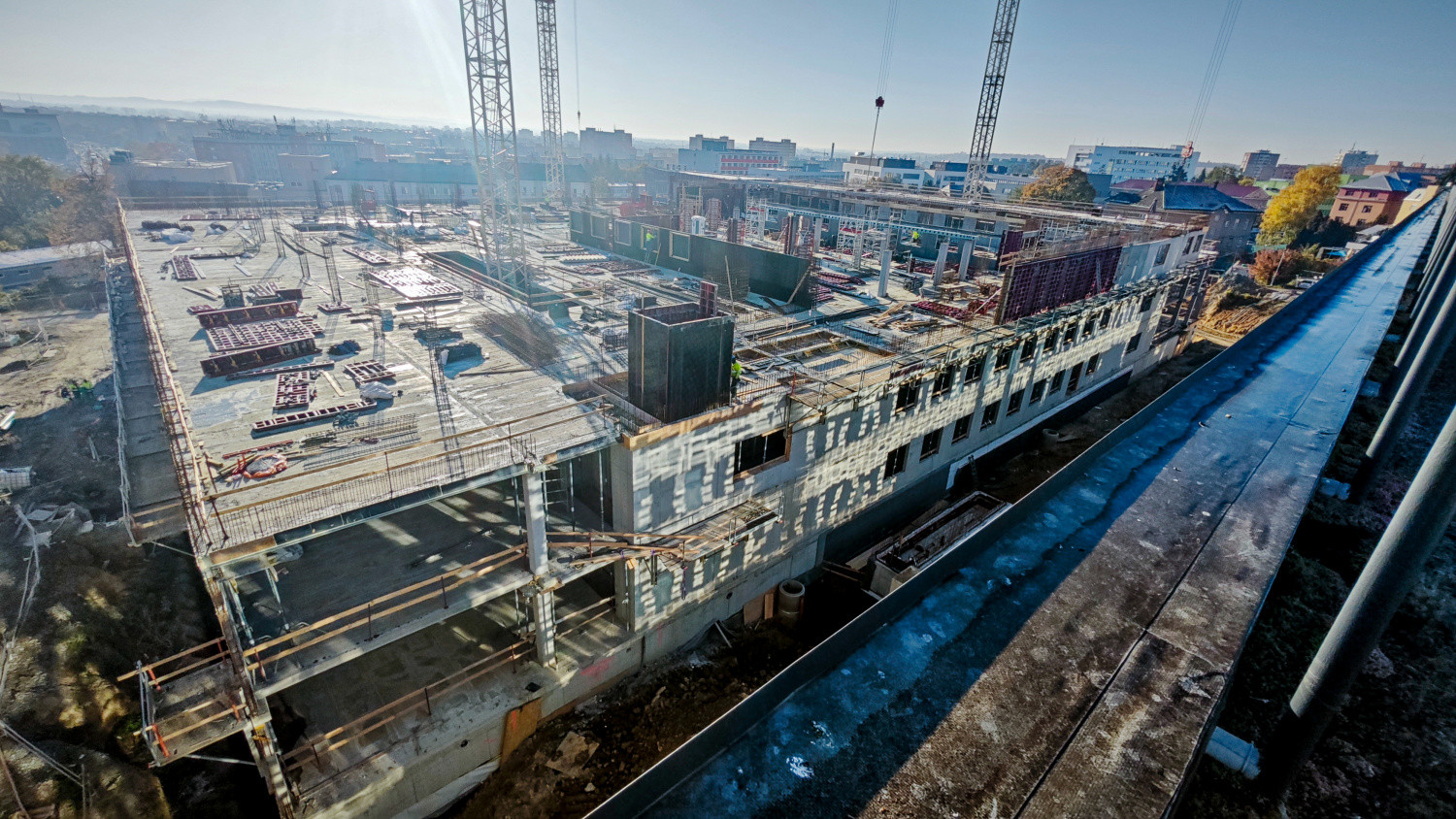 22. října 2025Takřka přesně před rokem, 21. října 2024, začala nová epocha rozvoje Fakultní nemocnice Olomouc. Symbolicky ji odstartovali představitelé největšího zdravotnického zařízení na střední Moravě, Ministerstva zdravotnictví ČR a zhotovitelských firem poklepáním na základní kámen nového ústředního pavilonu B vyrůstajícího na místě někdejší první budovy nemocnice, známé jako Franz Josef. A rok poté? Dokončena jsou čtyři podlaží z celkových osmi a areál FN Olomouc již pomalu získává zpět svou „ztracenou“ dominantu.